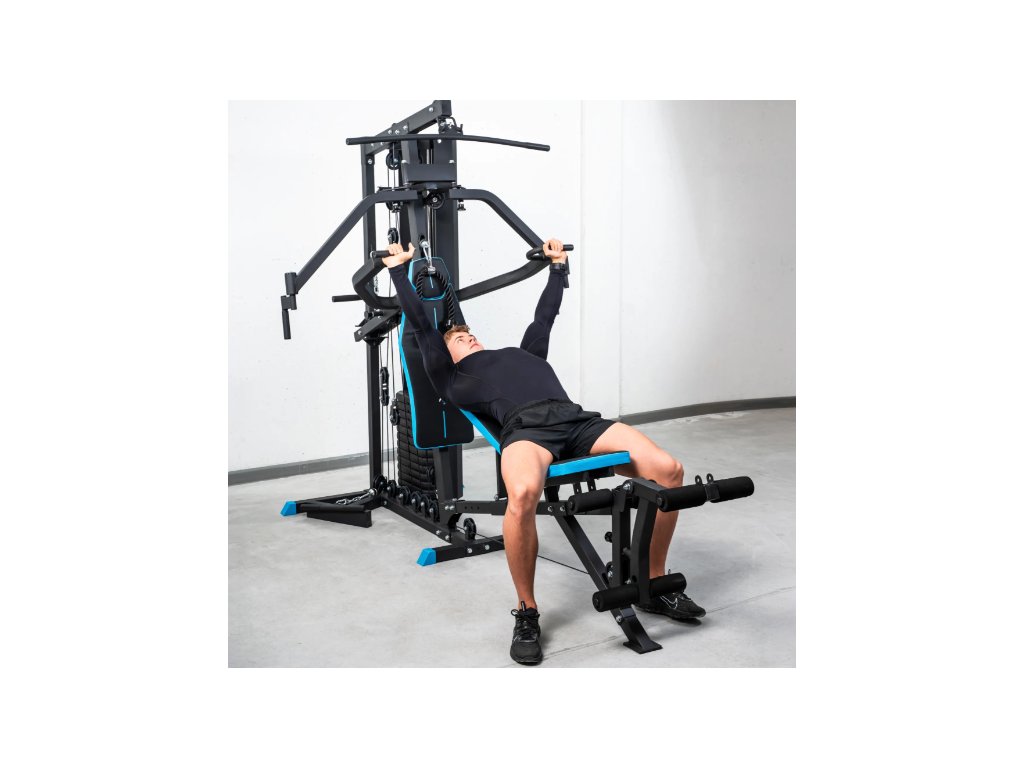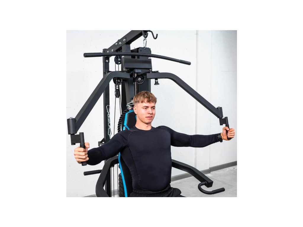 Aparatul vă permite să vă antrenați pieptul, spatele, umerii, brațele și trunchiul datorită brațelor, băncii și spătarului reglabile. Greutatea de până la 80 kg oferă o rezistență suficientă atât pentru începători, cât și pentru sportivii avansați. Unghiul băncii poate fi reglat pe trei niveluri, iar înălțimea spătarului pe două poziții, asigurând o personalizare precisă a antrenamentului. Datorită funcționării sale fluide și gamei ergonomice de mișcare, obțineți un control maxim asupra tehnicii și siguranței.