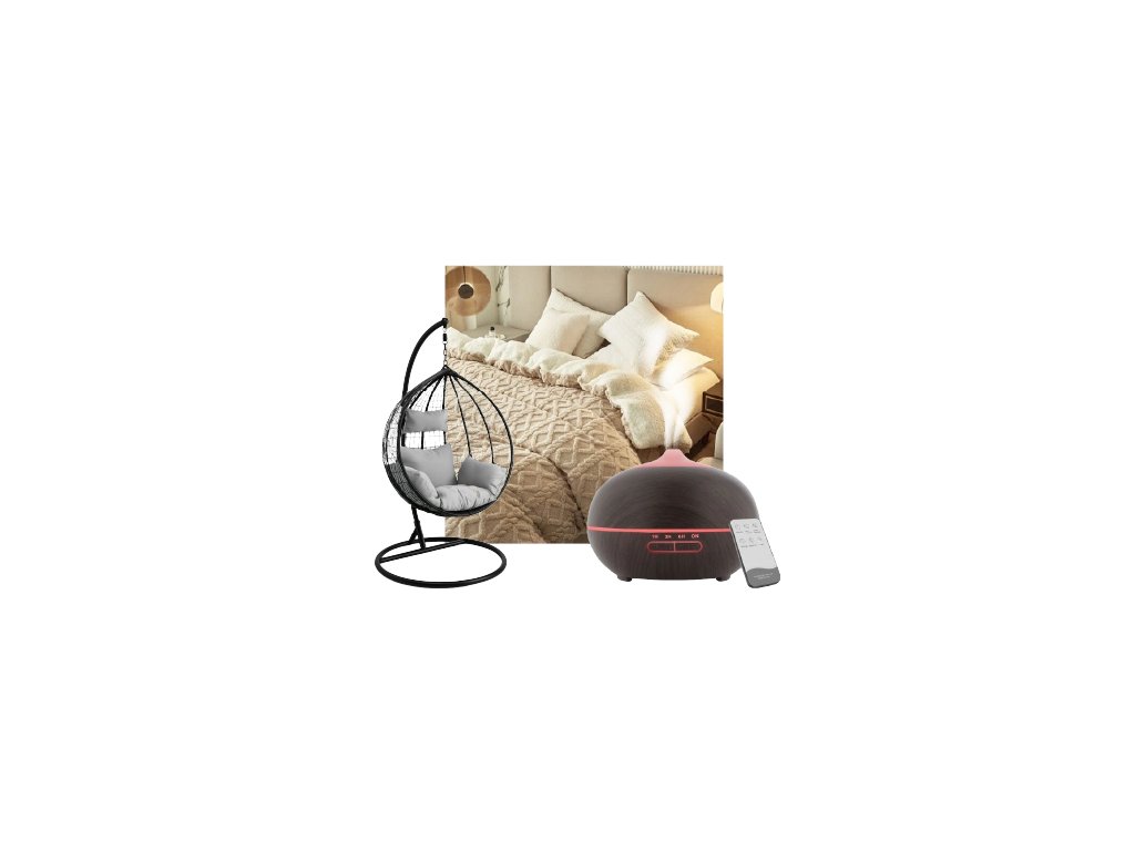 „Ou de dinozaur” este un scaun suspendat stilat, pe care îl puteți plasa atât în interior, cât și în exterior, devenind astfel locul vostru preferat pentru relaxare cu o carte sau ascultând muzică. Pătura moale vă va încălzi plăcut și va oferi un sentiment de siguranță confortabilă, fie că o luați afară, fie că rămâneți în interior. Difuzorul de arome parfumează delicat spațiul și creează o atmosferă armonioasă, în care vă veți simți ca pe o insulă privată de liniște.