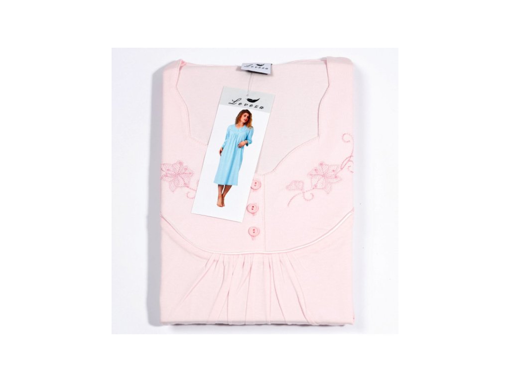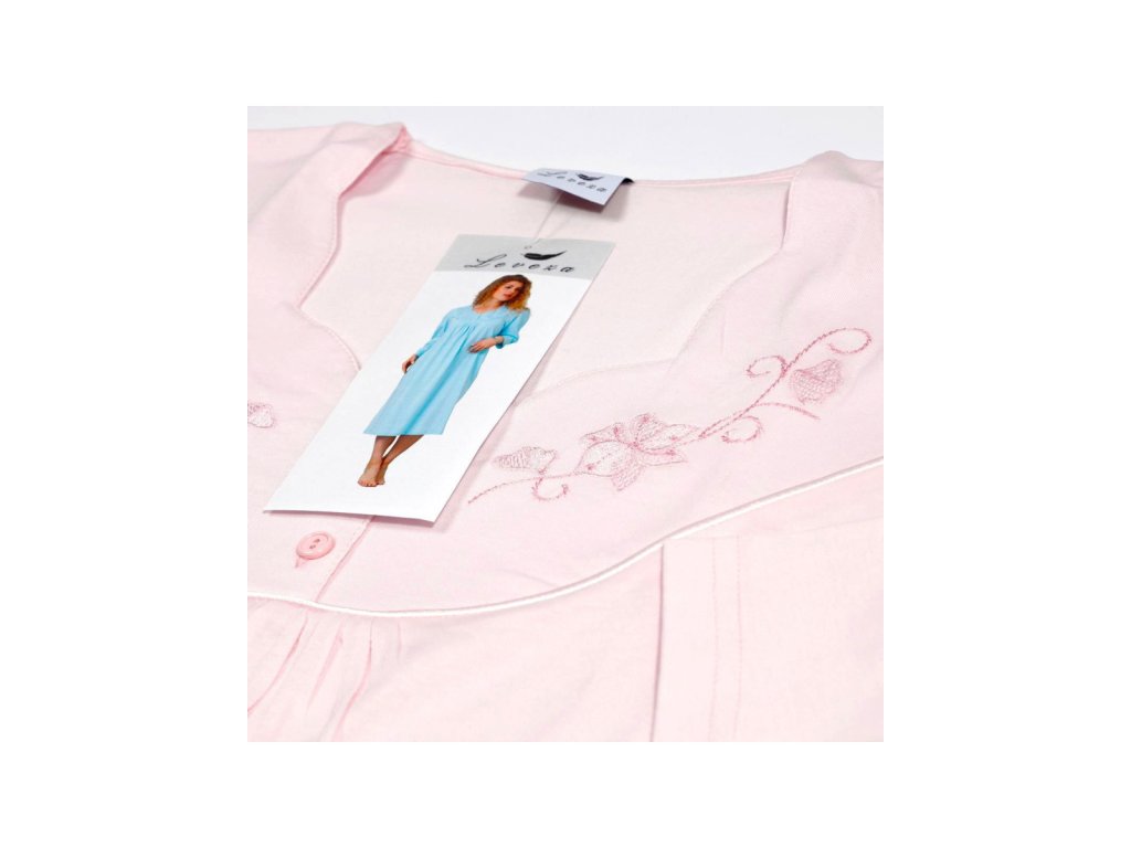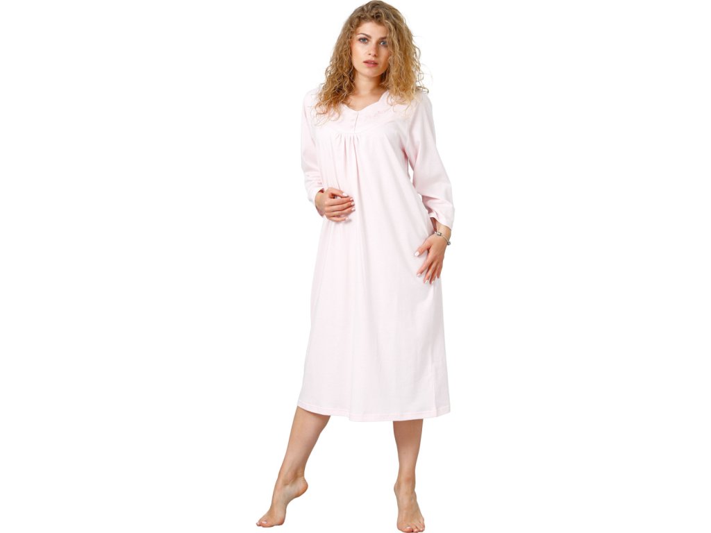 Fabricată din 100% bumbac, este delicată, respirabilă și potrivită și pentru pielea sensibilă. Bumbacul garantează o senzație naturală de uscăciune și prospețime pe tot parcursul nopții. Are o croială lejeră, cu pliuri în zona pieptului. Lungimea până la gleznă este ideală pentru femeile care apreciază confortul și decența. Decolteul delicat în V, cu ornamente și nasturi, conferă un aspect delicat și elegant. Mânecile lungi sunt apreciate mai ales în serile mai răcoroase.
