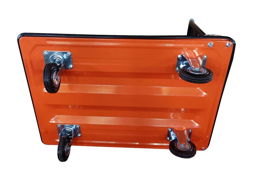 Căruciorul de transport pliabil WM04, cu o capacitate de încărcare de 300 kg, este potrivit pentru mutarea cutiilor, coletelor, echipamentelor, materialelor sau consumabilelor. Poate fi utilizat în depozite, ateliere, fabrici și chiar în gospodării, unde obiectele mai grele trebuie mutate în siguranță, fără a deteriora podeaua sau încărcătura. Suprafața antiderapantă și banda de protecție din cauciuc sporesc siguranța la fiecare mișcare.