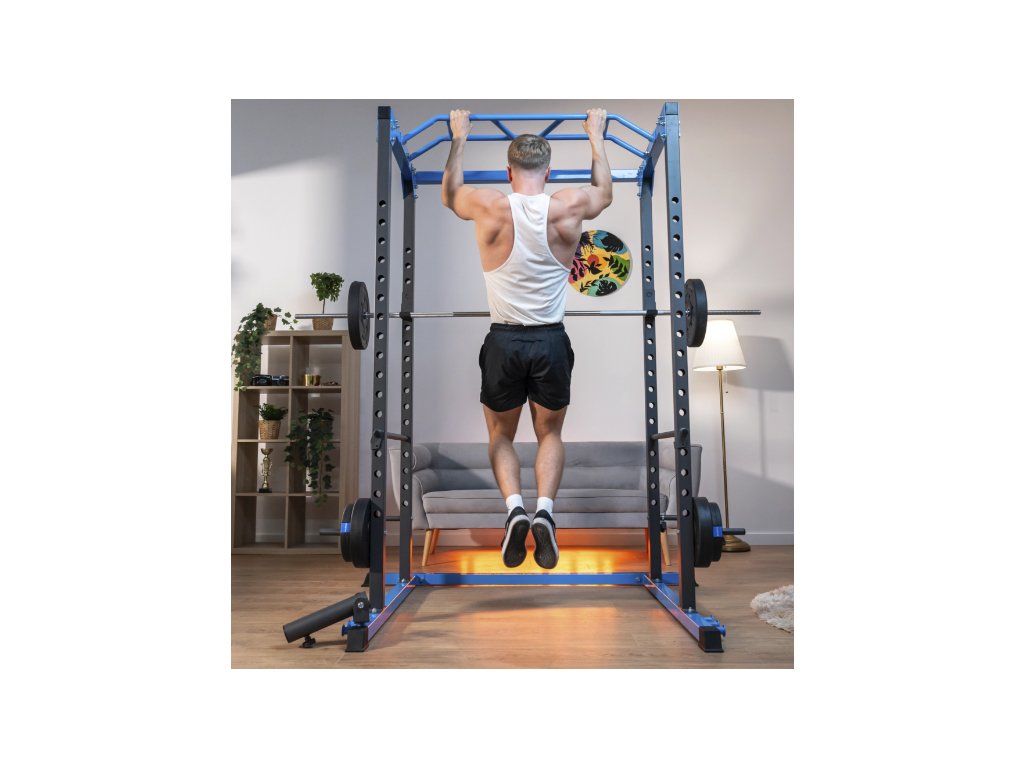 Cușca are o capacitate de încărcare de 250 kg, ceea ce asigură un sprijin sigur pentru toate exercițiile de forță. Greutatea maximă a utilizatorului de 120 kg garantează siguranța chiar și în timpul tracțiunilor, balansărilor și mișcărilor mai dinamice. Cușca de greutăți este concepută pentru ani de antrenament de forță exigent.