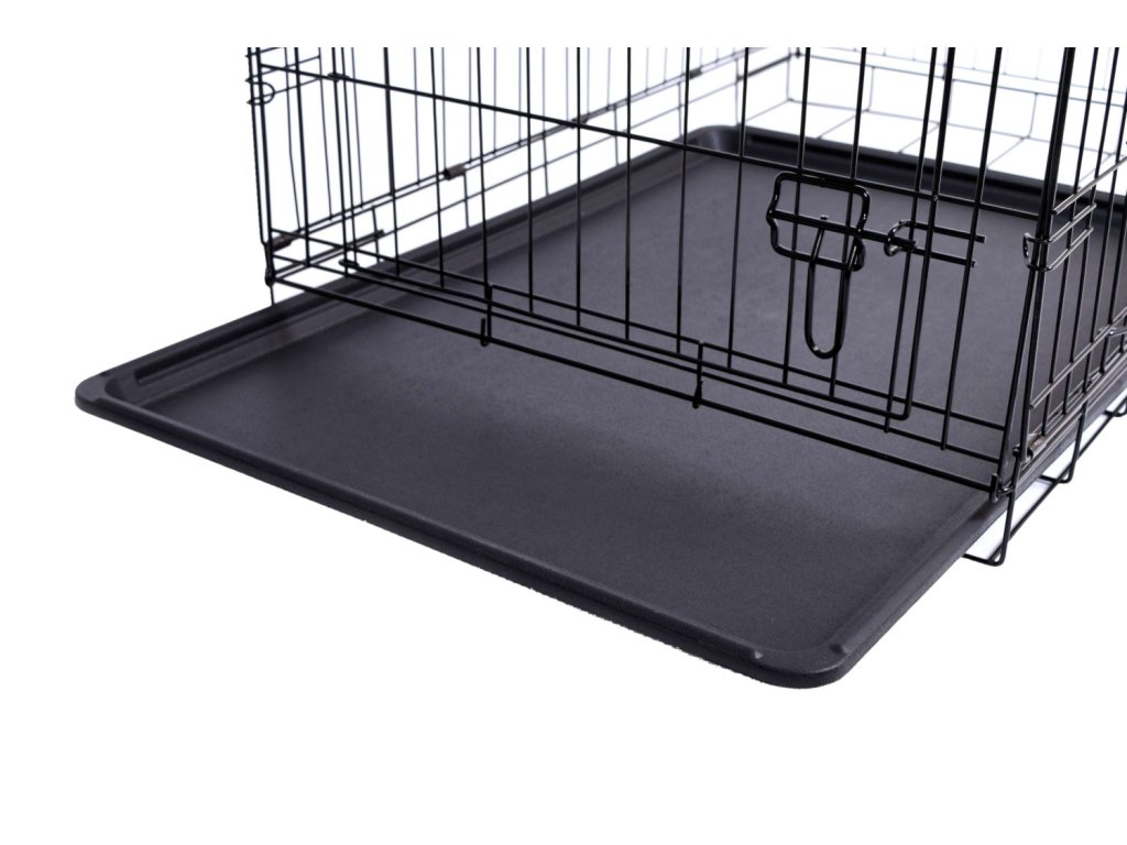 Cușca este echipată cu uși laterale și frontale practice, fiecare cu propriile încuietori solide, care garantează că animalele dvs. de companie vor fi întotdeauna în siguranță, fie acasă, fie în călătorii.