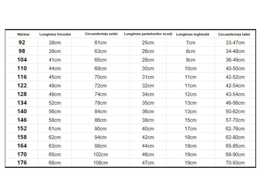 Setul include un tricou, pantaloni scurți pentru a vă asigura că aveți tot ce vă trebuie pe teren. Pantalonii scurți au o talie elastică pentru a asigura o potrivire perfectă și confort în timpul mișcării.
