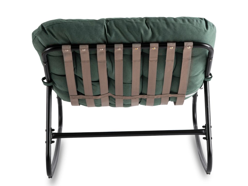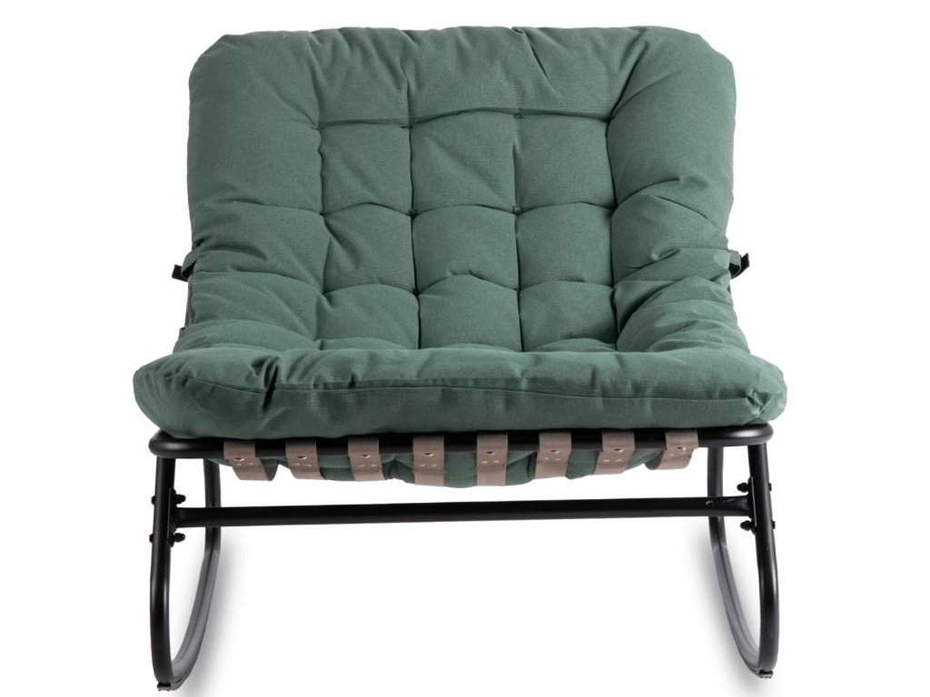 Da, structura metalică cu un tratament special al suprafeței asigură faptul că fotoliul balansoar Aurora verde poate fi utilizat și în aer liber, pe terasă, balcon sau în seră.