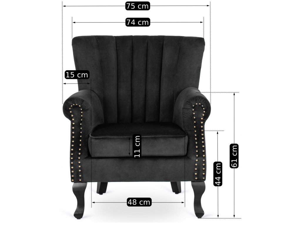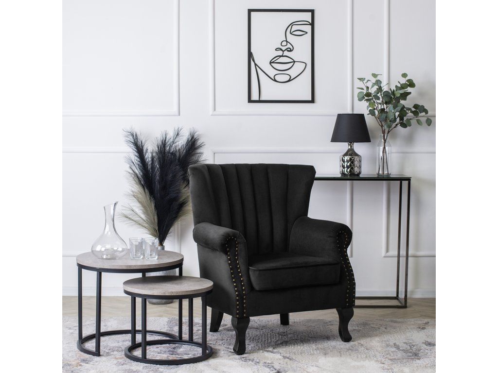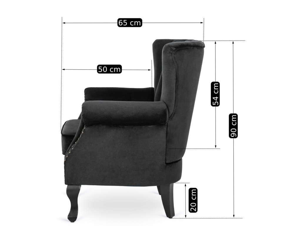 Fotoliu cu urechi Mallo velur, material lemn, velur, dimensiune 90 x 75 x 65 cm, culoare negru