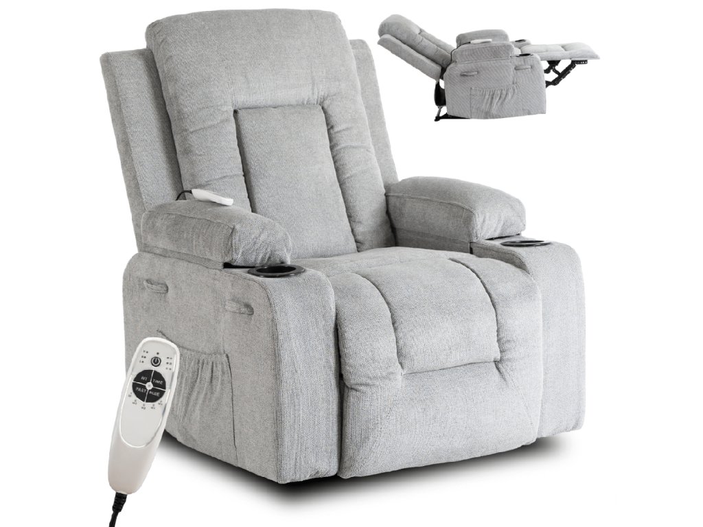 Fotoliu de masaj Box 2 țesătură gri deschis
