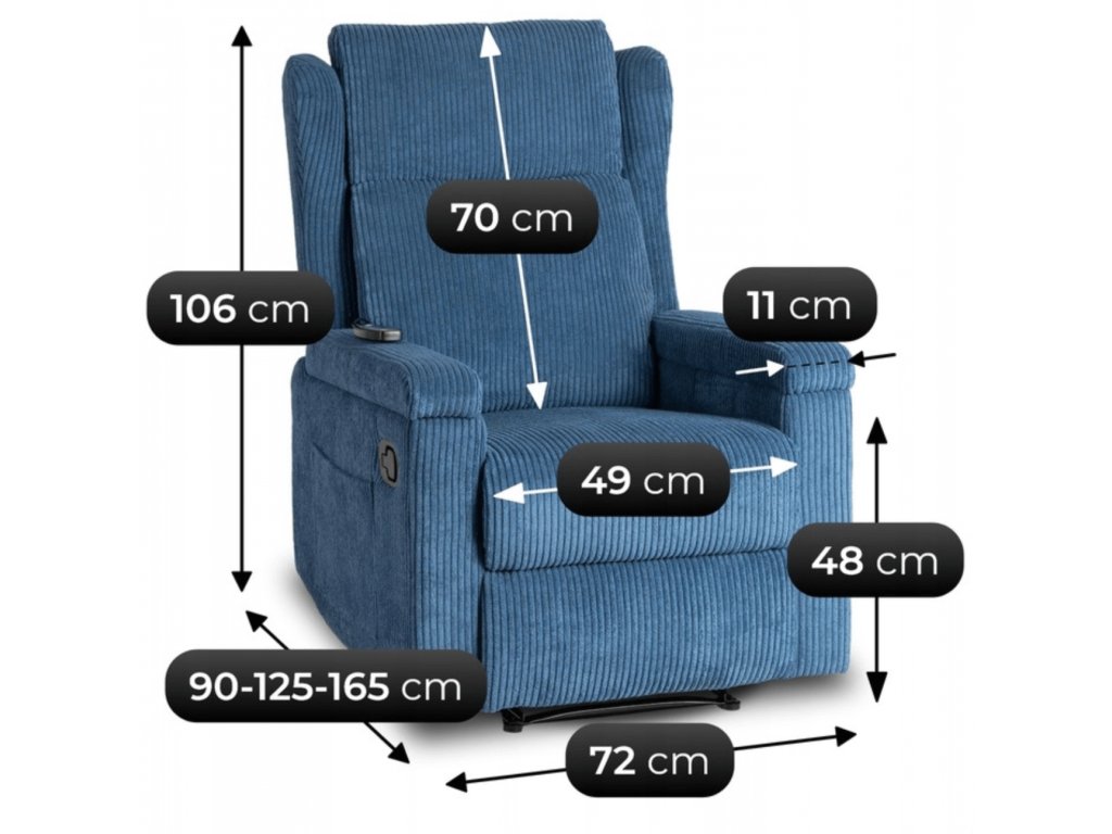 Căutați un loc unde să uitați de stresul de la serviciu și să vă oferiți corpului și minții o binemeritată odihnă? Fotoliu de masaj Sebastián în manchestru albastru combină confortul, funcționalitatea și stilul modern pentru a vă oferi o relaxare instantanee.