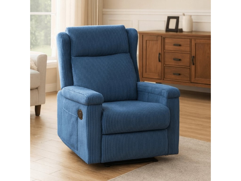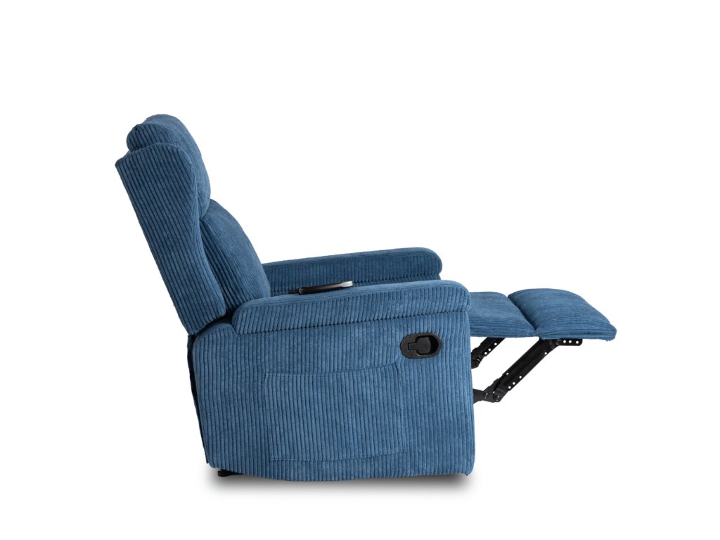 Tapițeria moale din manchester, cu textura sa caracteristică cu nervuri, nu este doar plăcută la atingere, ci și rezistentă la uzura zilnică. Nuanța albastră conferă eleganță modernă și se potrivește cu ușurință în diverse stiluri de interior. Construcția metalică oferă stabilitate și rezistență, asigurând o utilizare sigură și confortabilă.