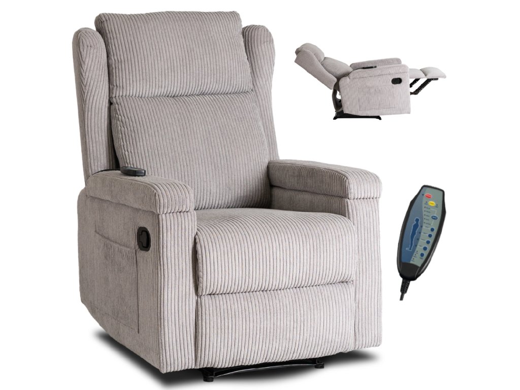 Datorită funcției de masaj, vă puteți bucura de relaxare la nivelul picioarelor, coapselor, șoldurilor și spatelui. Se controlează ușor cu ajutorul unei telecomenzi, de unde puteți selecta intensitatea și durata masajului în funcție de necesități. Detaliile practice, cum ar fi cotierele care se pot deschide, cu spațiu de depozitare, și un suport pentru picioare reglabil, sporesc confortul la fiecare utilizare.