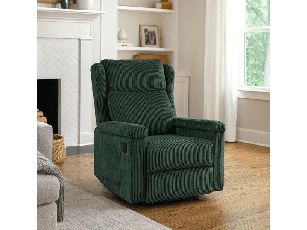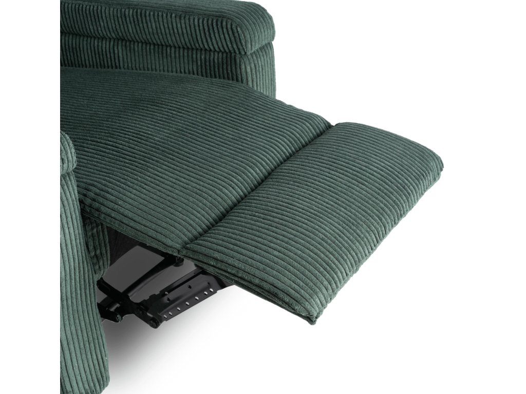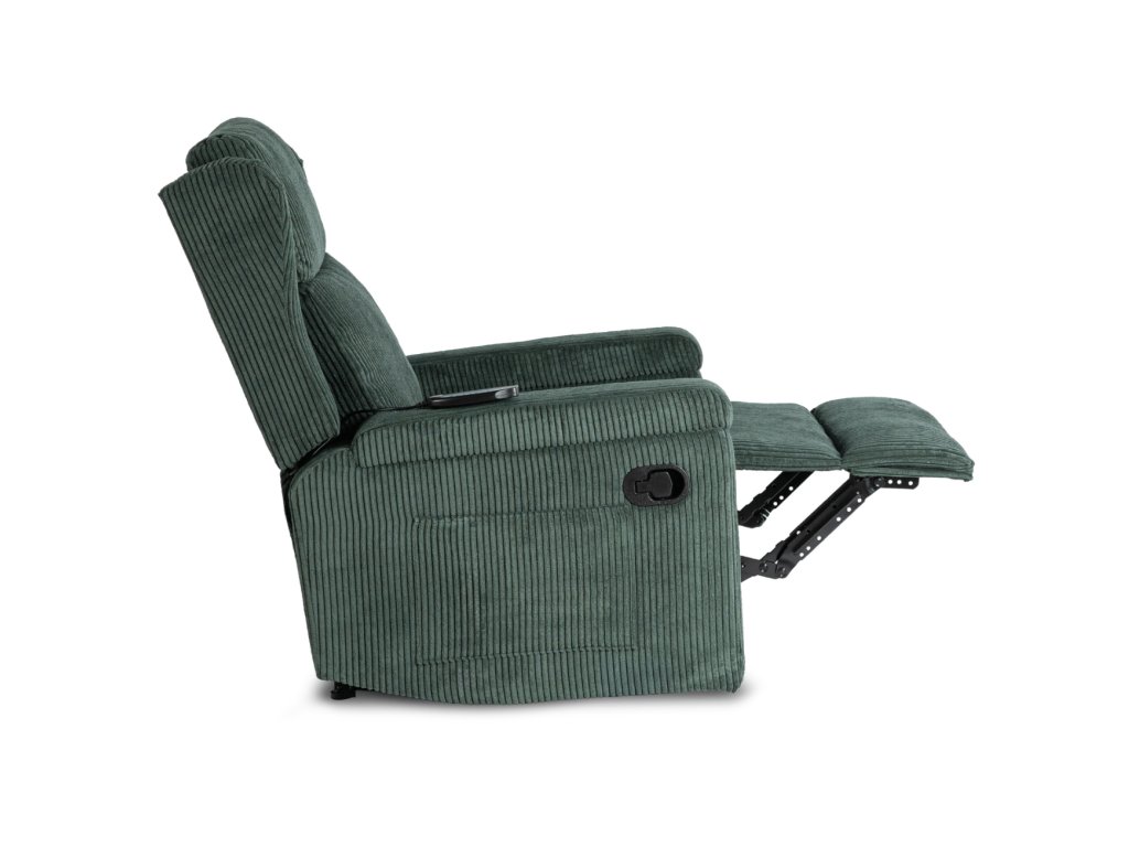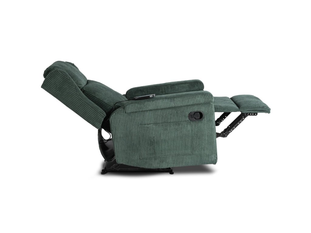 Tapițeria moale din manchester, cu textura sa caracteristică cu nervuri, nu este doar plăcută la atingere, ci și rezistentă la uzura zilnică. Nuanța verde conferă eleganță modernă și se potrivește cu ușurință în diverse stiluri de interior. Construcția metalică oferă stabilitate și rezistență, asigurând o utilizare sigură și confortabilă.