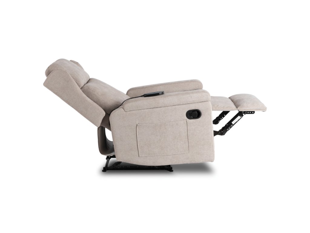 Datorită funcției de masaj, vă puteți relaxa picioarele, coapsele, șoldurile și coloana vertebrală. Se controlează ușor cu ajutorul unei telecomenzi, de unde puteți selecta intensitatea și durata masajului, după cum este necesar. Detaliile practice, cum ar fi cotiere deschise cu spațiu de depozitare și un suport pentru picioare reglabil, sporesc confortul la fiecare utilizare.