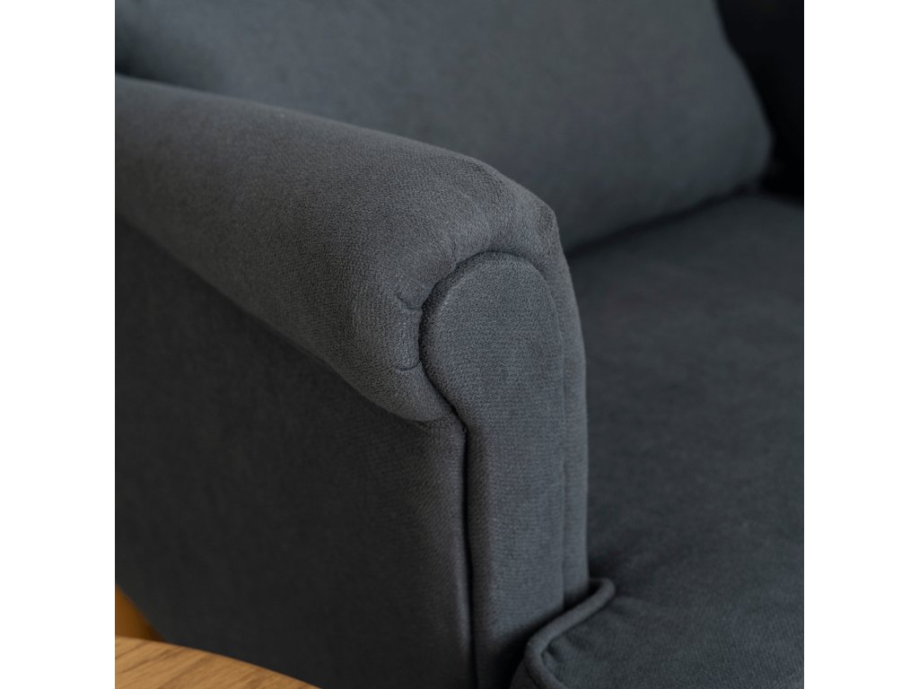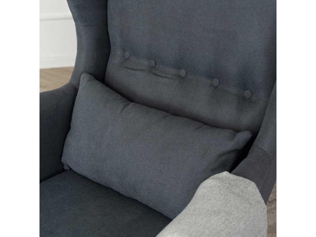 Evan 2 fotoliu, material textil, lemn de stejar, spumă 11 cm, dimensiuni fotoliu 85 x 82 x 104,5 cm, dimensiuni suport pentru picioare 43,5 x 41 x 70 cm, pernă lombară 50x25 cm, capacitate maximă de încărcare 125 kg, culoare gri