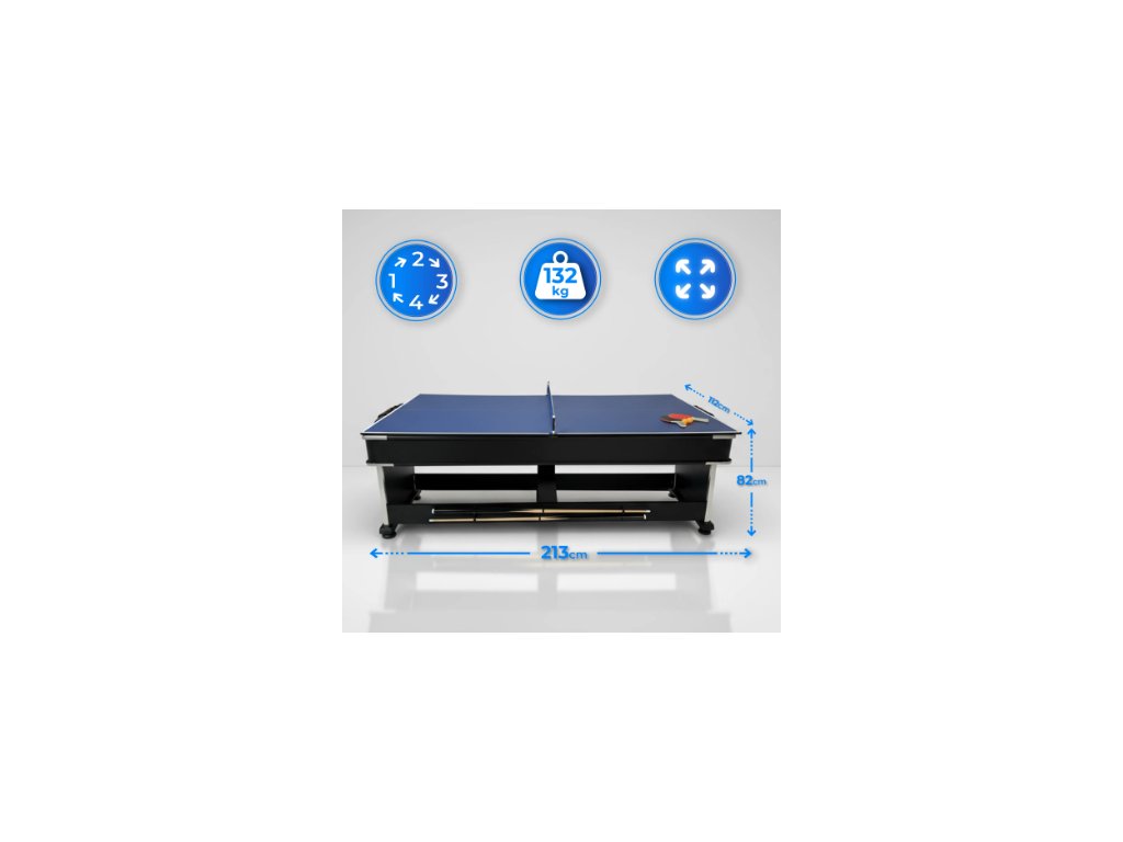 - Masă superioară – masă de dining/ping pong: 213 × 112 cm