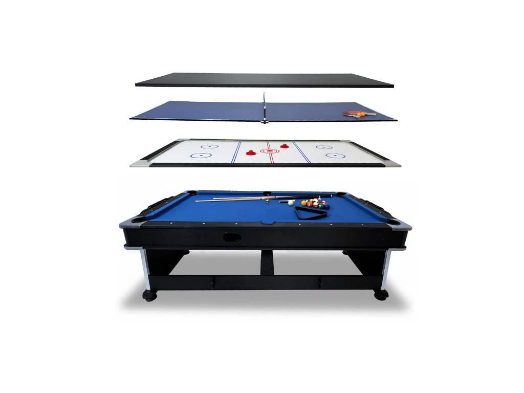 Masa de joc este fabricată din plăci MDF de înaltă calitate, care sunt solide, stabile dimensional și rezistente la impact și sarcini grele. Cadrul stabil oferă o bază solidă pentru toate cele patru jocuri, astfel încât să vă puteți bucura de biliard, hochei pe masă, tenis de masă și o masă de sufragerie fără să vă faceți griji că masa se va îndoi sau se va clătina.