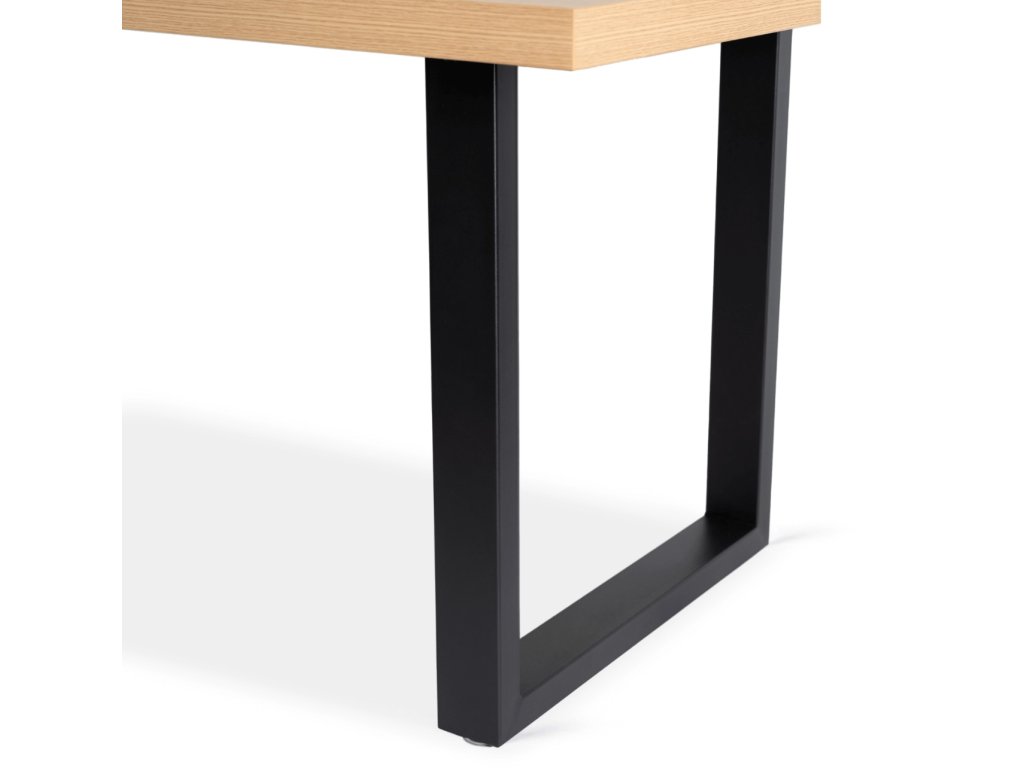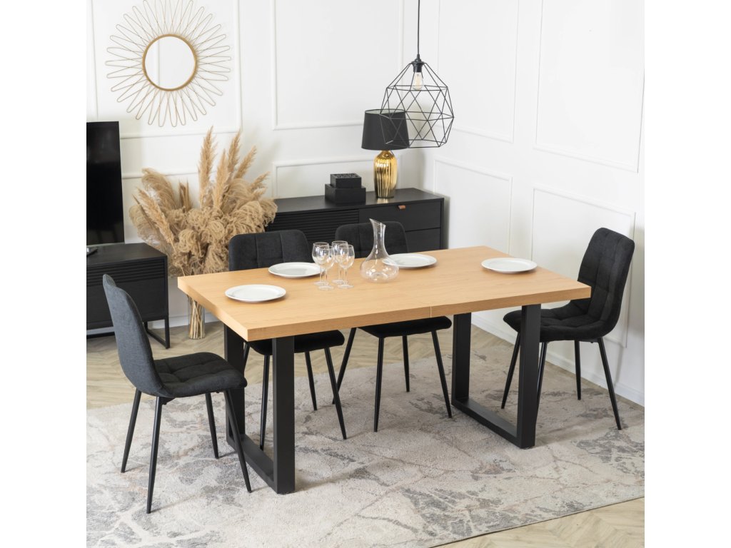 Blatul mesei este realizat din MDF cu decor de stejar auriu. Are un aspect cald și modern și se poate combina ușor cu majoritatea interioarelor. Suprafața este solidă, rezistentă la uzura normală și ușor de curățat. Picioarele din oțel negru conferă mesei stabilitate și un aspect modern de tip loft, care se potrivește în spații clasice, rustice și moderne.