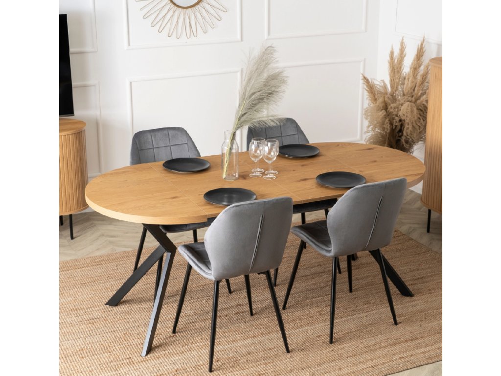 Forma rotundă creează un loc plăcut pentru conversație și scaune confortabile. Când este extins, obțineți suficient spațiu pentru mai multe persoane, ceea ce veți aprecia atunci când primiți oaspeți sau organizați evenimente familiale. Mecanismul de extensie este ușor, simplu și conceput astfel încât chiar și o singură persoană să îl poată acționa fără efort.