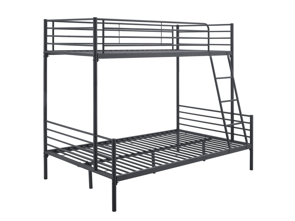 Patul supraetajat negru Tres are cadrul realizat integral din metal, conceput pentru stabilitate și utilizare pe termen lung. Construcția metalică asigură rezistență la utilizare zilnică și nu se deformează în timp. Designul simplu permite integrarea patului în diferite tipuri de interioare și utilizarea mai multor tipuri de saltele standard.