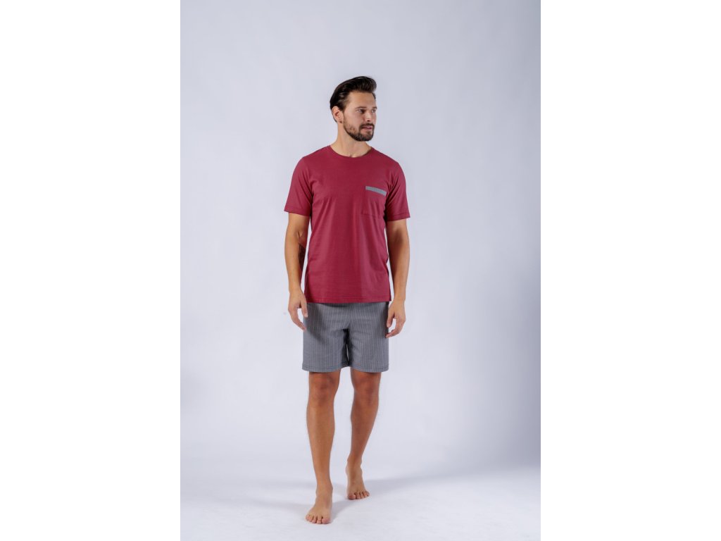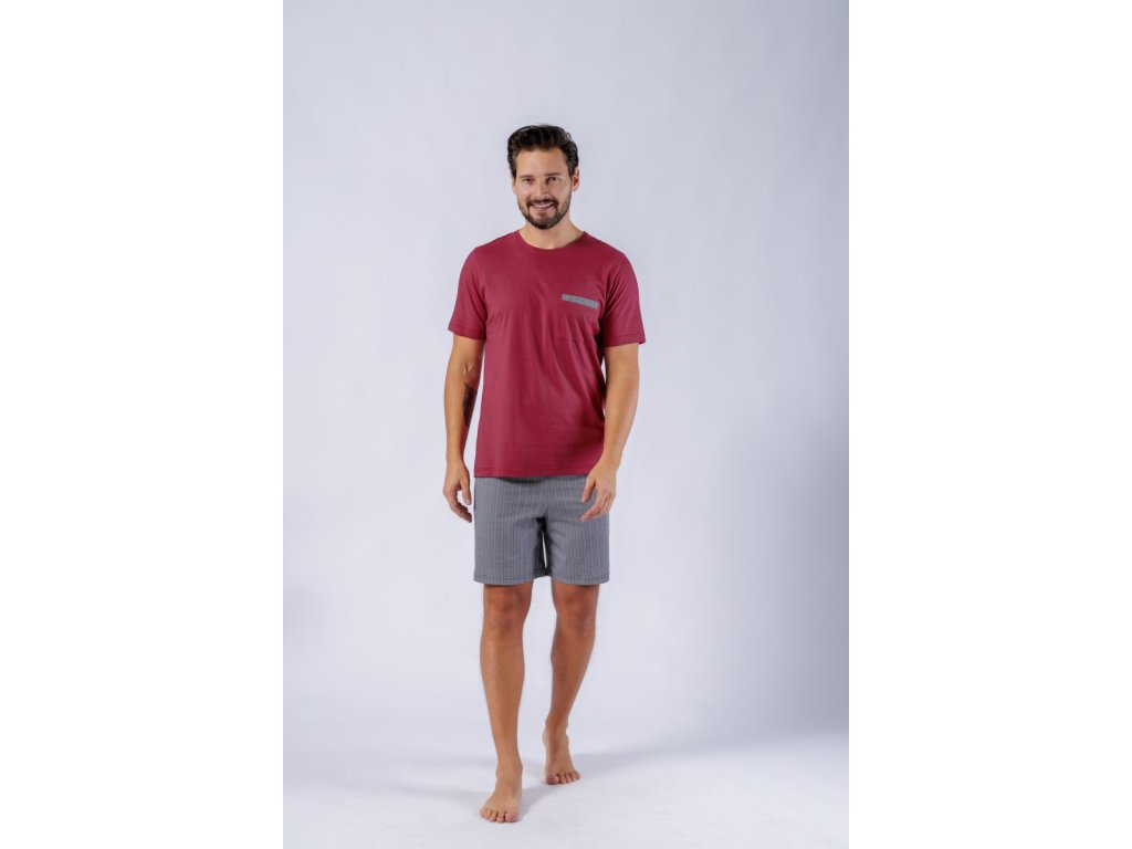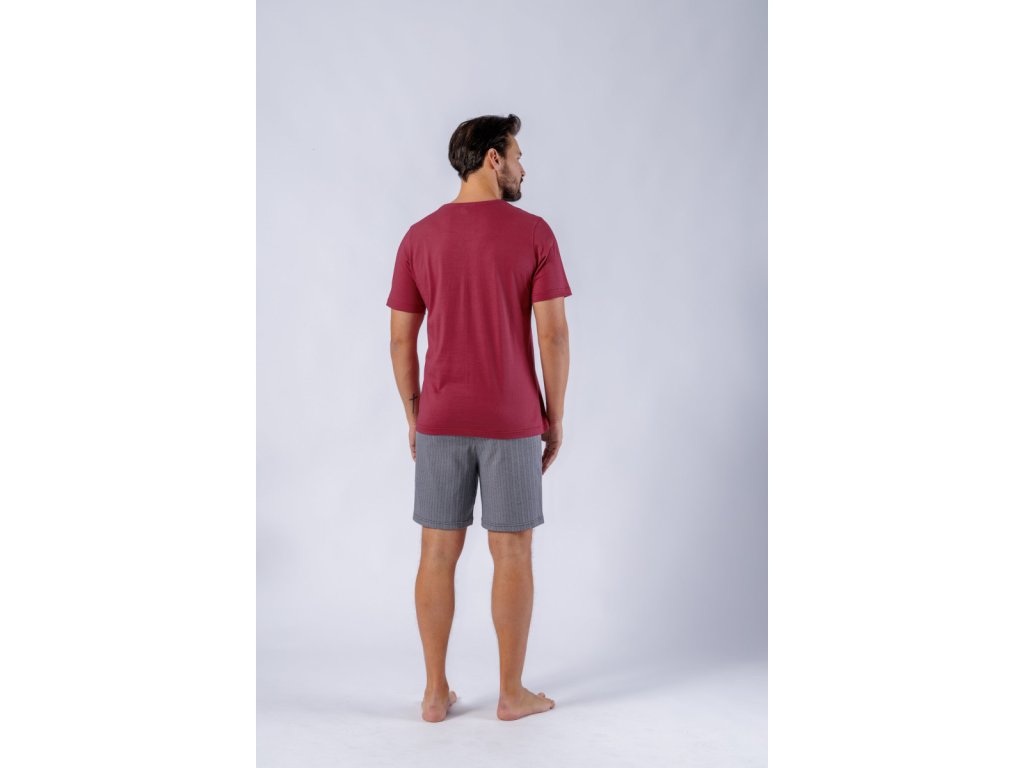 - culoare: tricou burgund, pantaloni scurți cu dungi gri