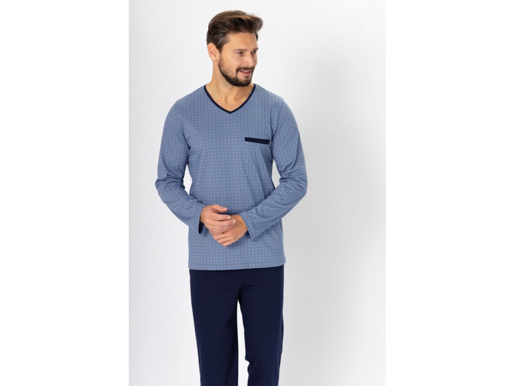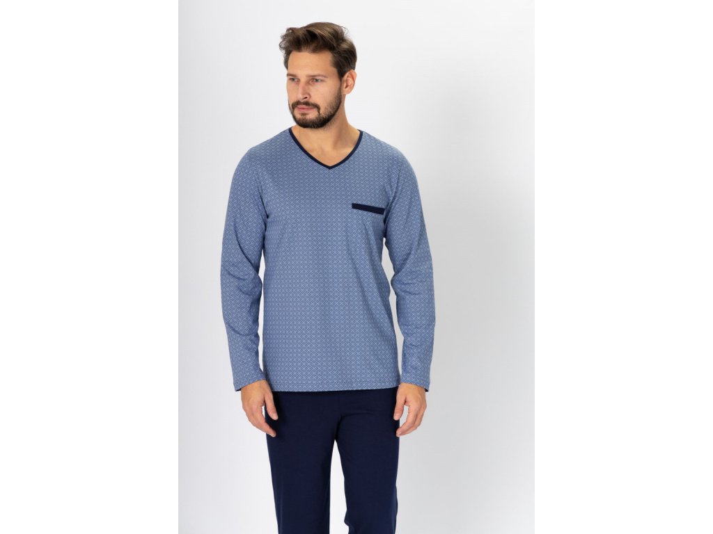 Pijama pentru bărbați cu mâneci lungi albastru Carl