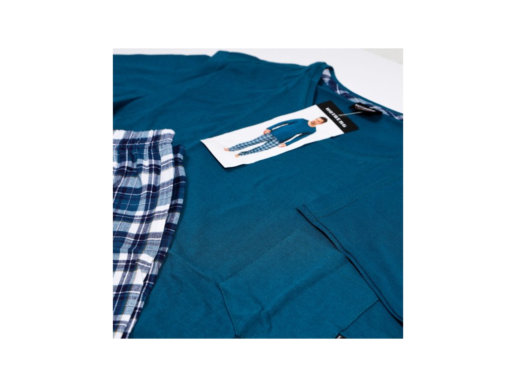 Pijama pentru bărbați cu mâneci lungi culoare petrol Leo