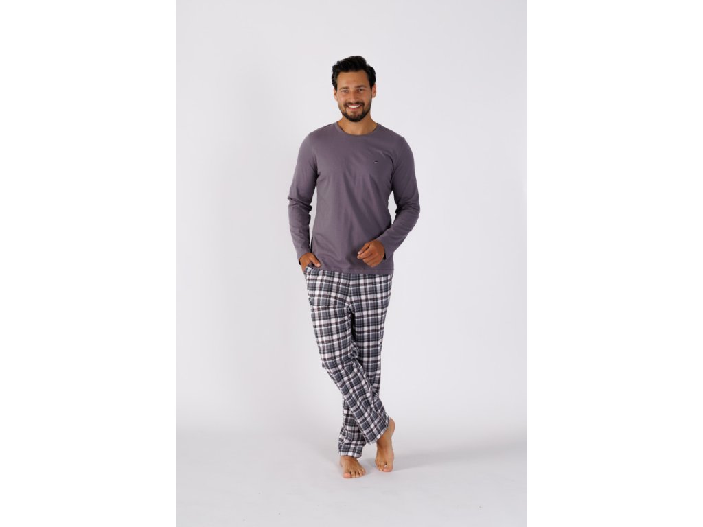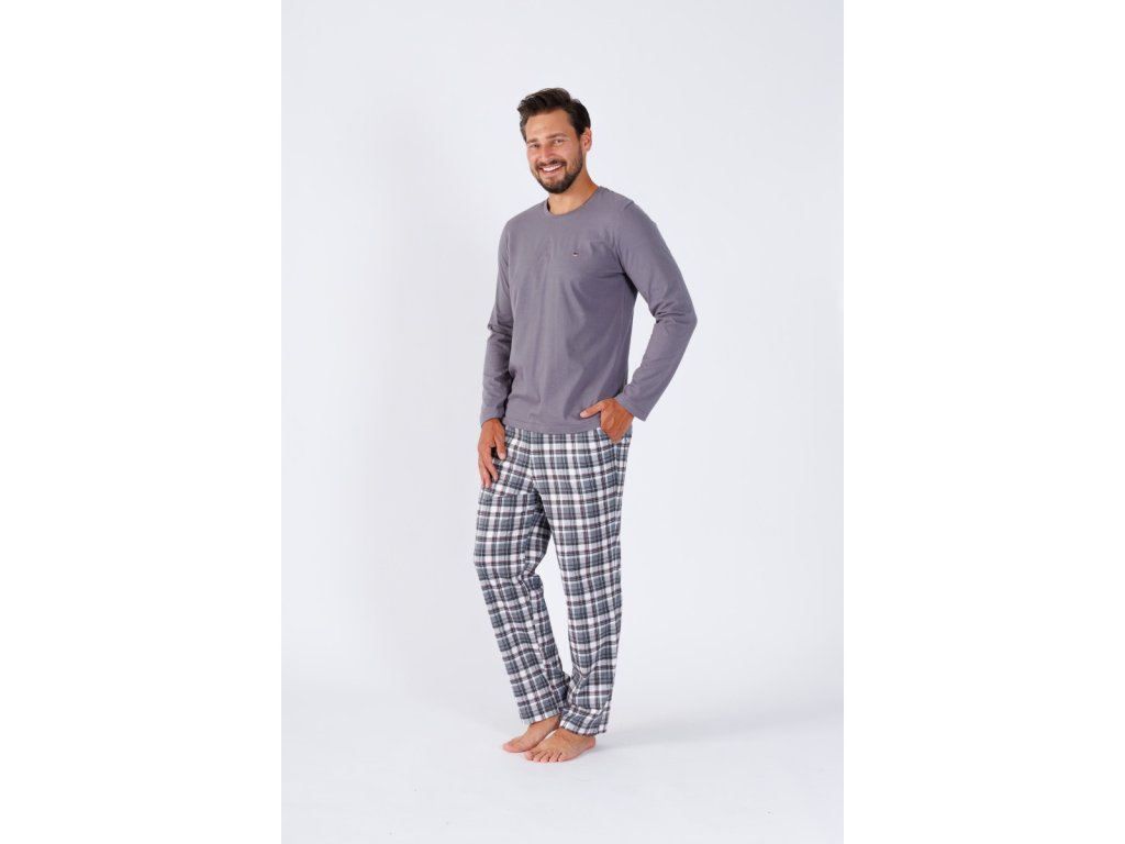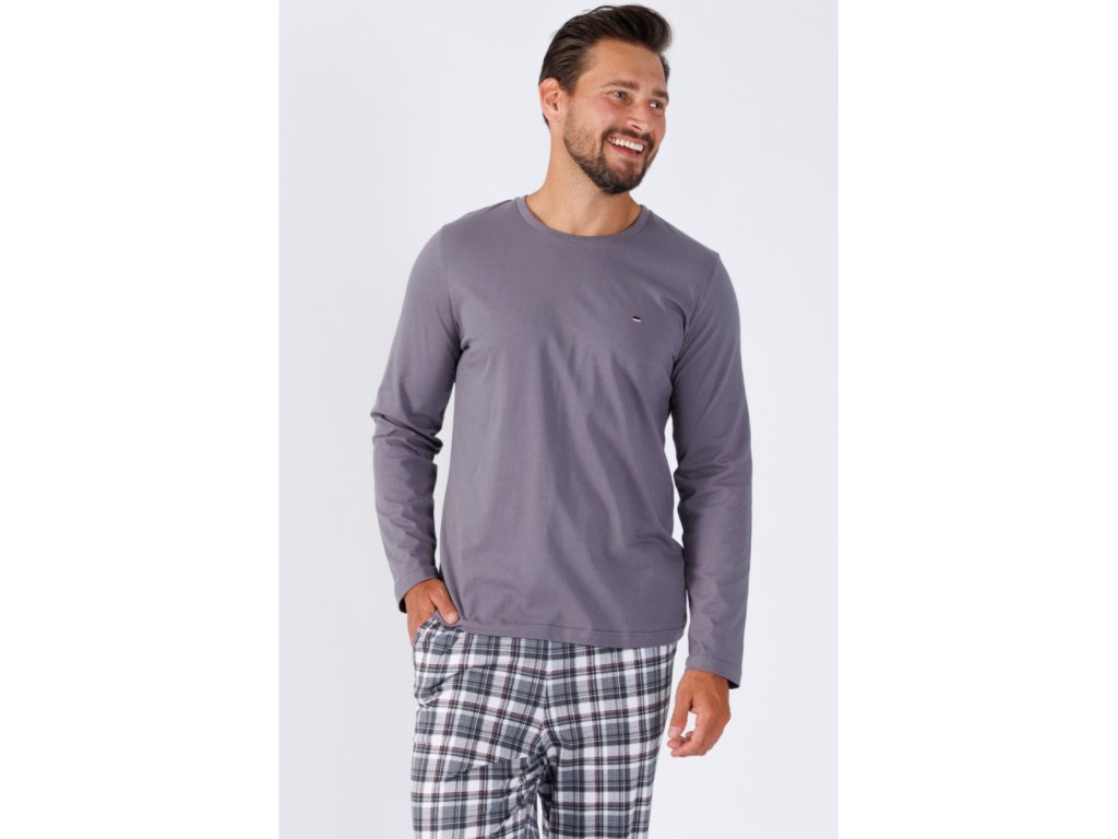 Pijama pentru bărbați cu mâneci lungi gri Maxim