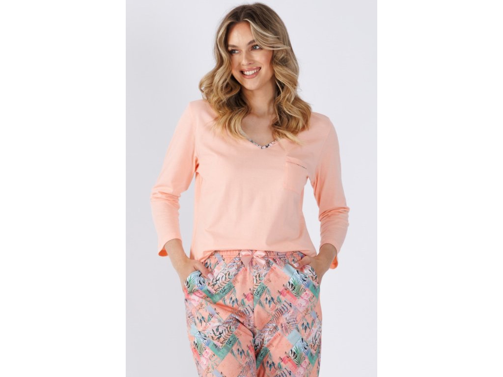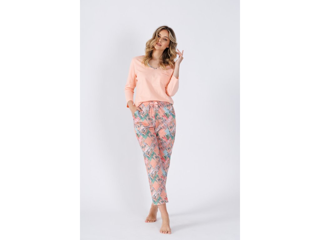 Pijama pentru femei din bumbac cu mâneci lungi și pantaloni colorați