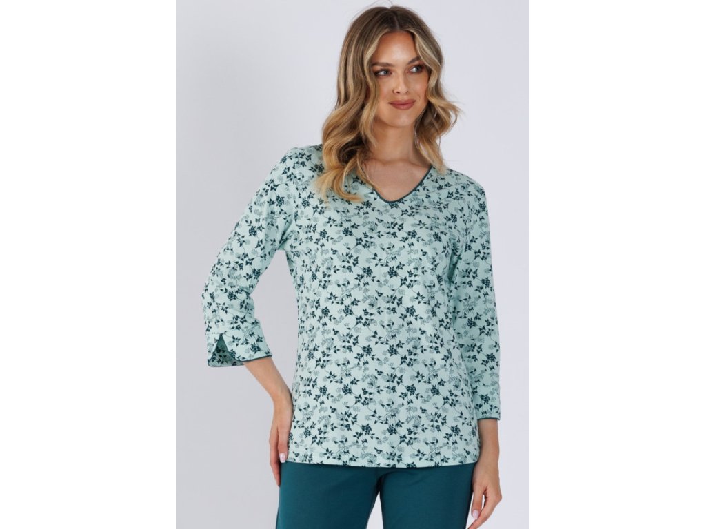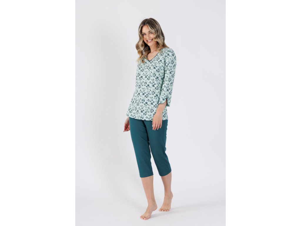 Pijama pentru femei din bumbac cu bluza cu flori și pantaloni 3/4