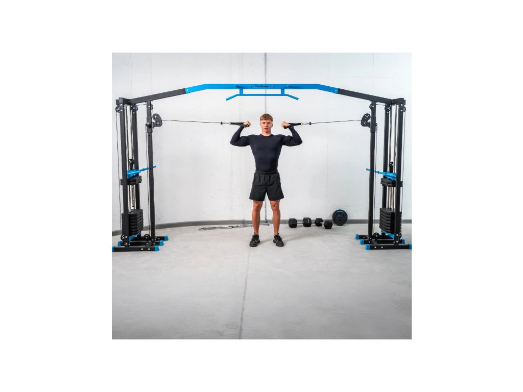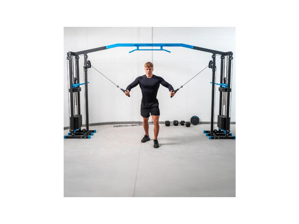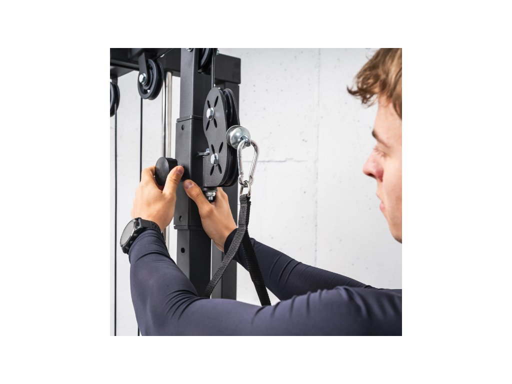 Reglarea înălțimii scripetelor pe 10 niveluri vă permite să adaptați antrenamentul la fizicul și obiectivele dvs. Puteți antrena tracțiuni deasupra capului, tracțiuni sub mână, presări, fluturări, rotații, bicepși, tricepși, piept și spate.