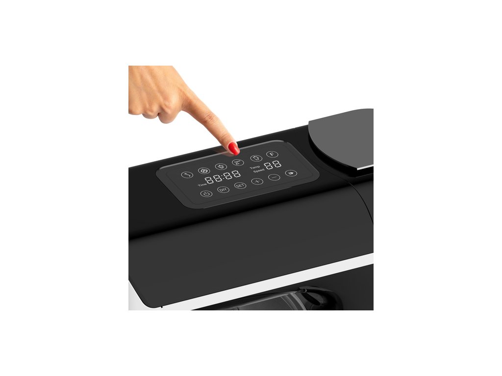 Bolul încălzit accelerează creșterea aluatului și îmbunătățește structura acestuia. Cele unsprezece viteze asigură o amestecare precisă, de la creme ușoare la aluat gros de pâine sau pizza. Cântarul și cronometrul încorporate economisesc timp, deoarece puteți cântări și seta totul direct în bol. Puteți regla temperatura de la 25 la 45 °C în funcție de rețetă.
