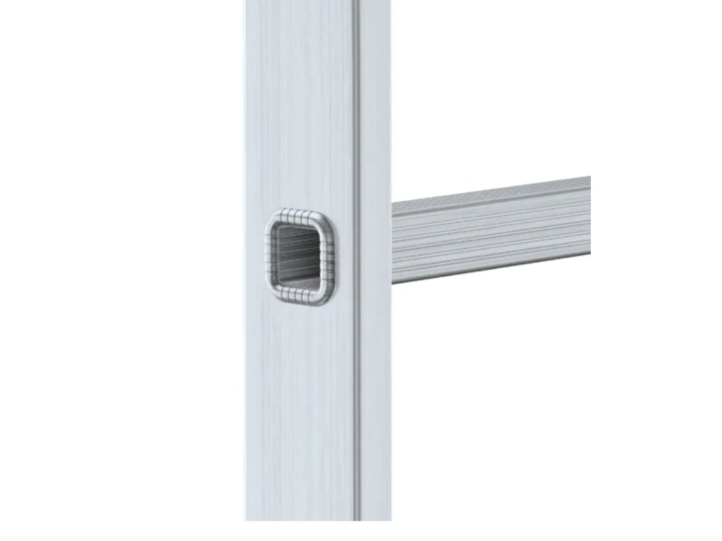 Fiecare treaptă este canelată pentru o aderență perfectă și siguranță la lucrul la înălțime. Distanța de 26,5 cm între trepte permite urcarea confortabilă fără efort excesiv pentru picioare. Scara are îmbinări presate care garantează rezistența și stabilitatea pe termen lung a structurii.
