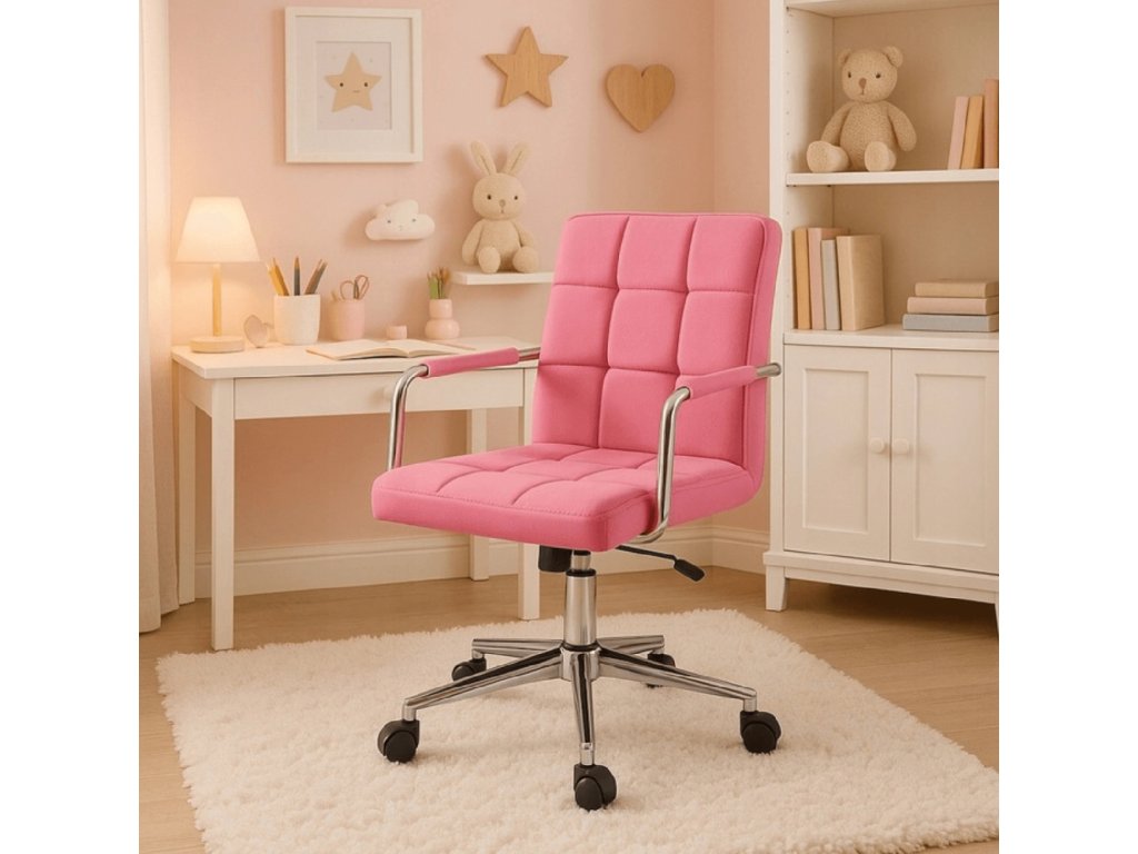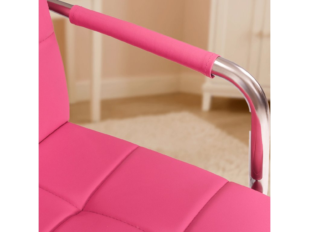 Tapițeria din piele ecologică de înaltă calitate este moale la atingere și durabilă pentru utilizarea zilnică. Culoarea roz conferă scaunului un aspect versatil și elegant, care se potrivește unei varietăți de stiluri de camere.