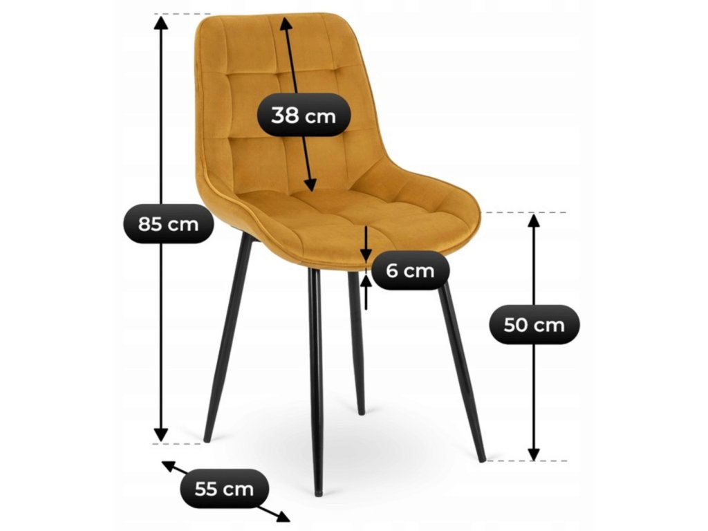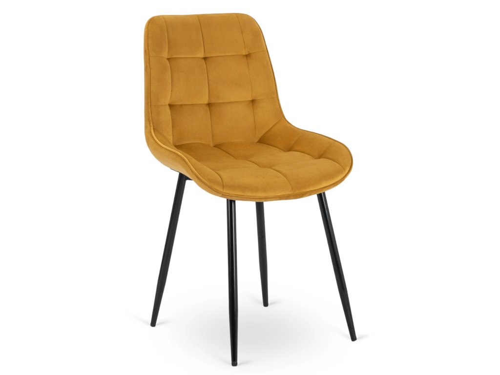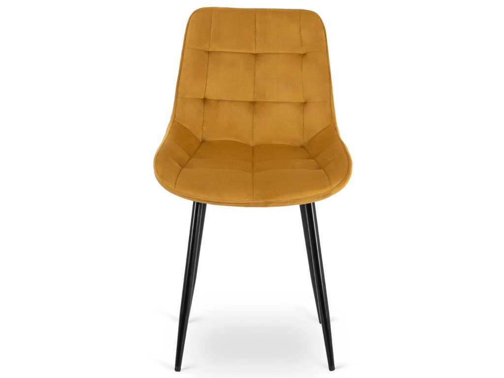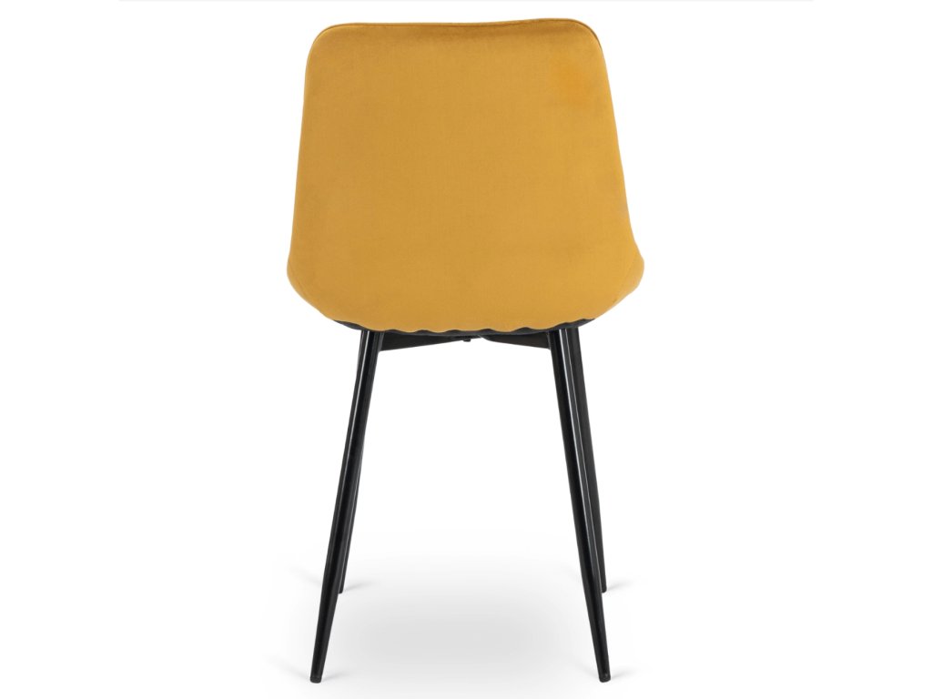 Scaunul de bucătărie Chris din velur mustar este tapițat cu o husă din catifea moale, plăcută la atingere și rezistentă la abraziune. Picioarele sunt realizate din metal solid cu un strat de pulbere neagră, care garantează stabilitate și durabilitate.