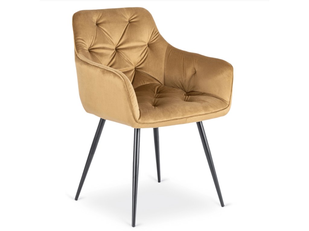 Acesta combină confortul, eleganța și stilul modern. Tapițeria moale din catifea este plăcută la atingere, matlasarea conferă un aspect luxos, iar picioarele metalice asigură stabilitate pentru utilizarea zilnică.