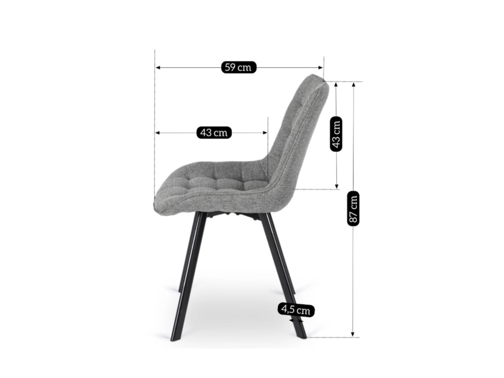 Cadrul scaunului este realizat din metal durabil, mai precis din oțel negru acoperit vopsea cu pulbere, care nu numai că asigură rezistență și stabilitate, dar îi conferă și un aspect modern. Structura este proiectată să reziste la o sarcină maximă de până la 120 kg, combinând estetica cu practicitatea.