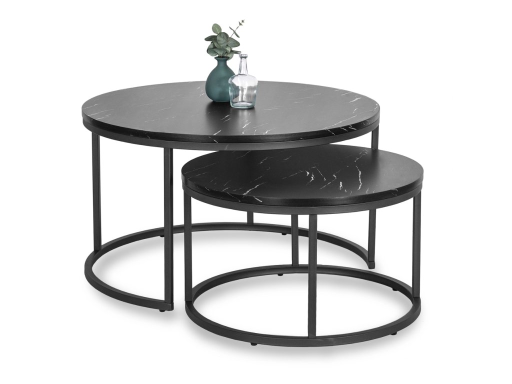 Set de 2 măsuțe de cafea Mauro din marmură neagră